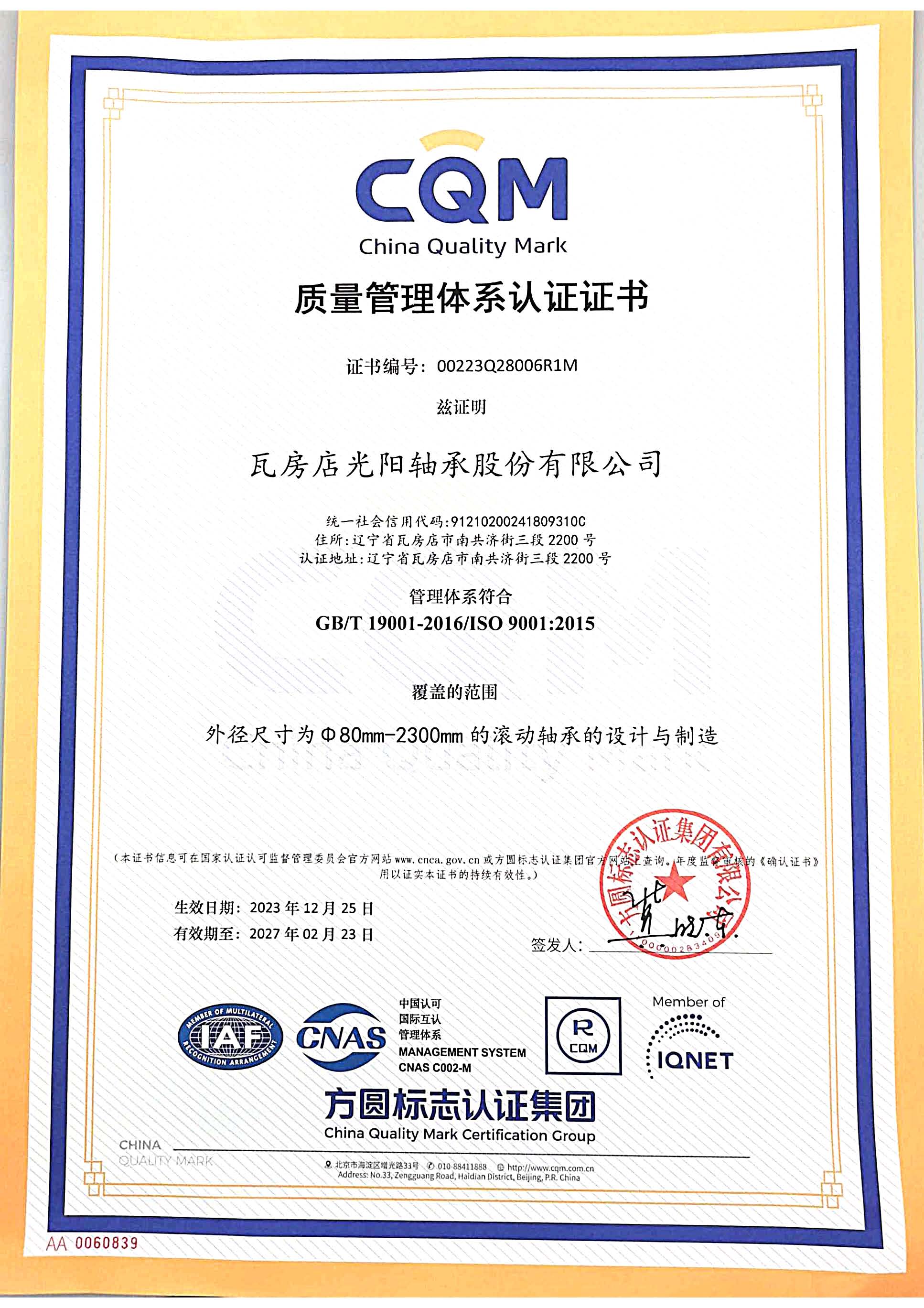 瓦房店光陽軸承股份有限公司